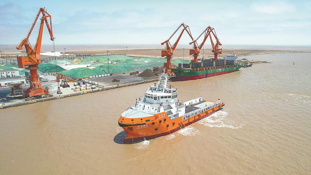 “黃海拖01”緩緩靠泊鹽城港濱海港區