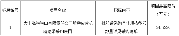 (1)項目名稱:大豐海港港口有限責任公司所需皮帶機輸送帶采購項目