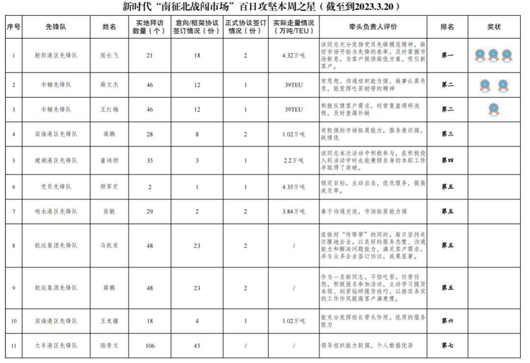 第一名:航運集團先鋒隊 馬躍東,射陽港區先鋒隊 侯長飛,濱海港區先鋒隊 高鵬,響水港區先鋒隊 張敏 2份