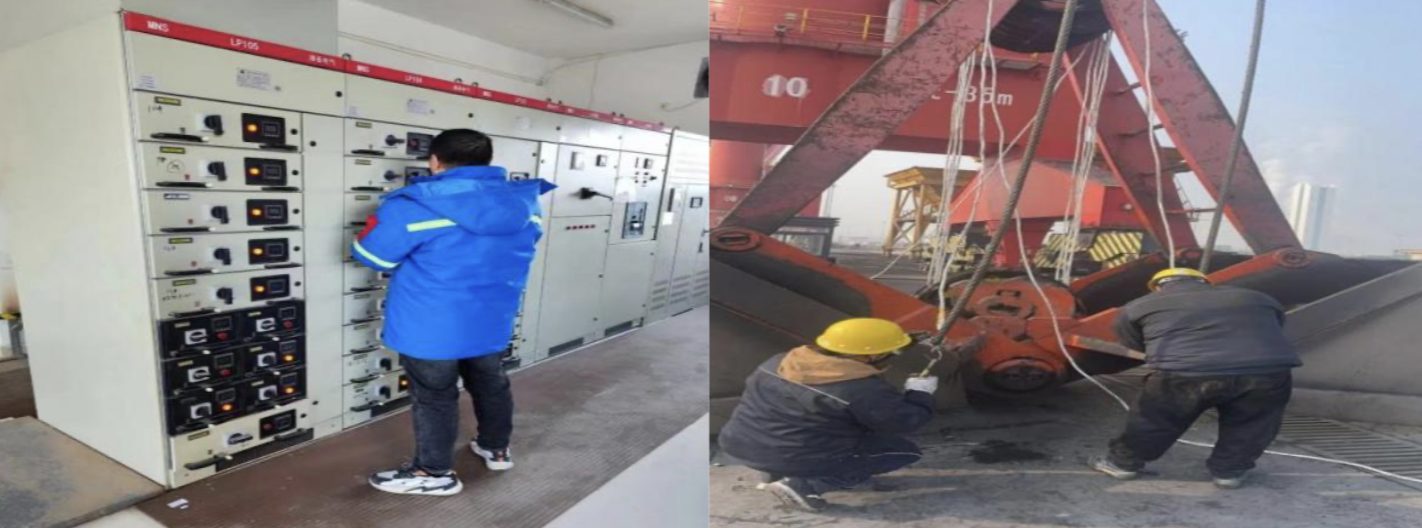 射陽港區(qū)為保證春節(jié)期間射陽港電廠煤炭保供的運(yùn)營效率與安全性,全面啟動港口設(shè)備維護(hù)和檢修工作。維修班組深查細(xì)找開展線路緊固和電氣排查工作,“望聞問切”查明設(shè)備“病因”,精準(zhǔn)制定解決方案,根據(jù)實(shí)際情況進(jìn)行易損零配件更換,確保設(shè)備在冬季高效運(yùn)行;堅(jiān)持高標(biāo)準(zhǔn)維修作業(yè)、潤滑保養(yǎng),通過系統(tǒng)性的檢查、嚴(yán)格的驗(yàn)收流程,實(shí)施閉環(huán)管理,保障設(shè)備養(yǎng)護(hù)的全周期,不斷強(qiáng)化設(shè)施設(shè)備安全管控。