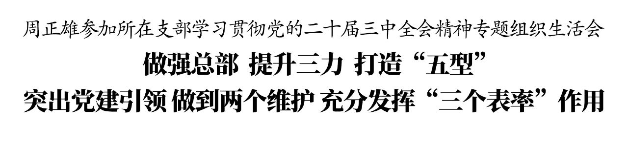 8月14日,集團機關(guān)第一黨支部召開學習貫徹黨的二十屆三中全會精神專題組織生活會,集中學習習近平總書記關(guān)于推動機關(guān)黨建高質(zhì)量發(fā)展作出的重要指示精神。集團黨委書記、董事長周正雄以普通黨員身份參加會議。