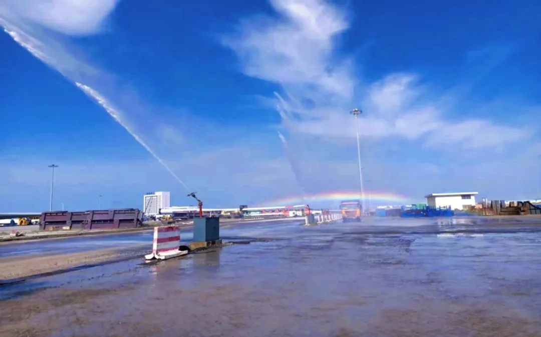 聽,嗚嘩~嗚嘩~嗚嘩...4臺60M霧炮交叉作業(yè),唱響綠色港口贊歌。