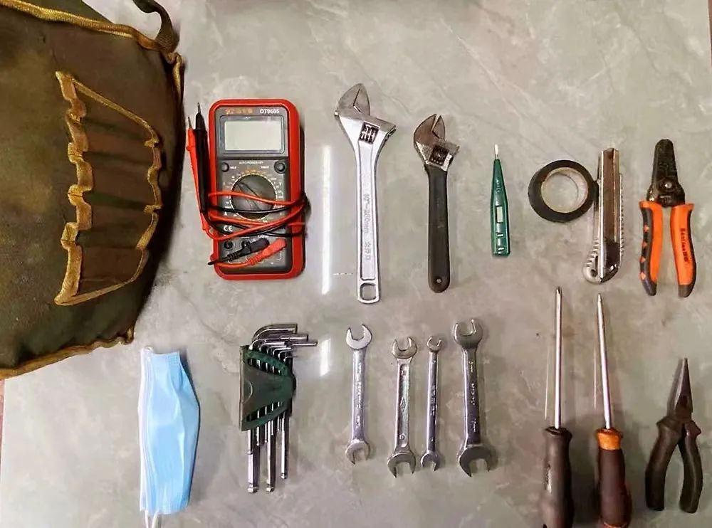 萬用表、尖嘴鉗、試電筆、絕緣膠帶……