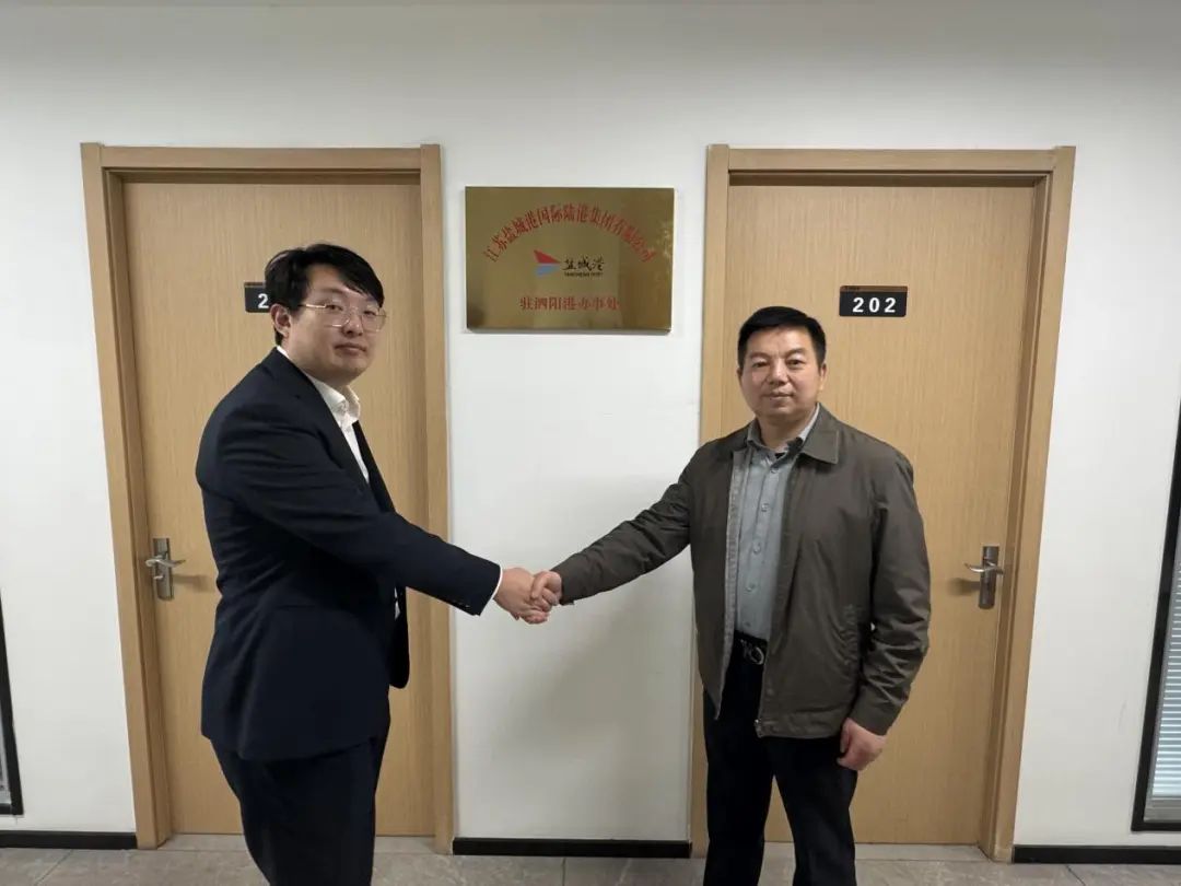 辦事處揭牌儀式上,雙方就兩港之間的業務合作進行了深入洽談,并對臺兒莊港至亭湖港區石灰石“散改集、陸改水”項目達成一致合作意向。