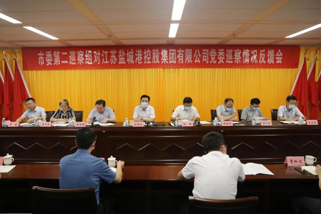 根據(jù)市委巡察工作領(lǐng)導(dǎo)小組部署,7月19日下午,市委第二巡察組向鹽城港集團(tuán)黨委反饋巡察情況。市委巡察工作領(lǐng)導(dǎo)小組成員、市紀(jì)委副書記、市監(jiān)委副主任劉向陽傳達(dá)市委書記專題會議精神,并對抓好巡察整改工作提出要求。市委第二巡察組組長謝偉代表市委巡察組向鹽城港集團(tuán)黨委領(lǐng)導(dǎo)班子反饋巡察情況。鹽城港集團(tuán)黨委書記、董事長、總經(jīng)理周正雄主持會議并作表態(tài)發(fā)言。